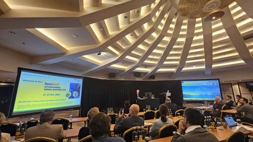 祝贺Dynamesh全球Hernia大师班顺利召开发表时间:2024-12-03 14:32 2024年11月,一年一度的德迈Dynamesh全球Hernia大师班开启的月份。欧洲大陆恰逢冷空气来袭,但是德国杜塞尔多夫的Clayton酒店里仍然聚齐了基本外科和疝外科的来自世界各地学术大咖。